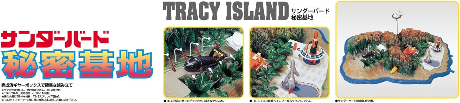 From the Manufacturer Imported from Japan. From their base on Tracy Island the International Rescue team embarks on missions around the world. This model kit recreates the secret island base from Gerry Anderson's Thunderbirds in exacting detail, and it comes with miniature versions of the Thunderbird 1, 2, 3, 4 and 5. Some assembly required.